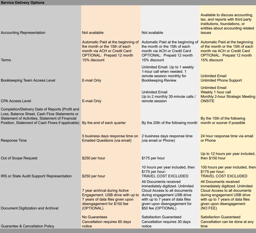 Cleanup/Adjustments is 50% of cost for each month prior to engagement